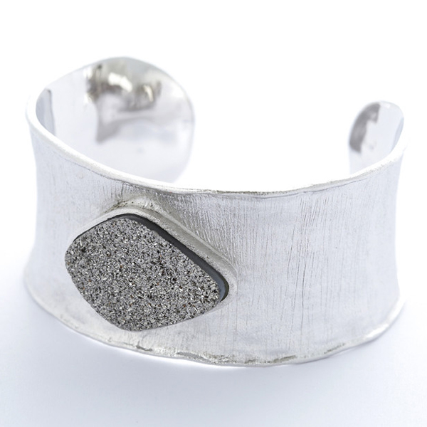 - Sterling Silver Plated Cuff with Geometric Titanium Druzy