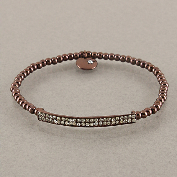 - Brown Beads with Pave Crystal Bar - Stretch Style