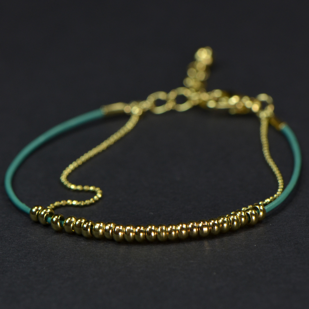 - Small Gold Sliding Beads on Blue String with Chain