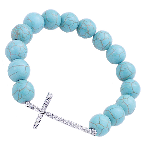 - Turquoise Beads Beads with 1 1/2'' Cross - Stretch Style