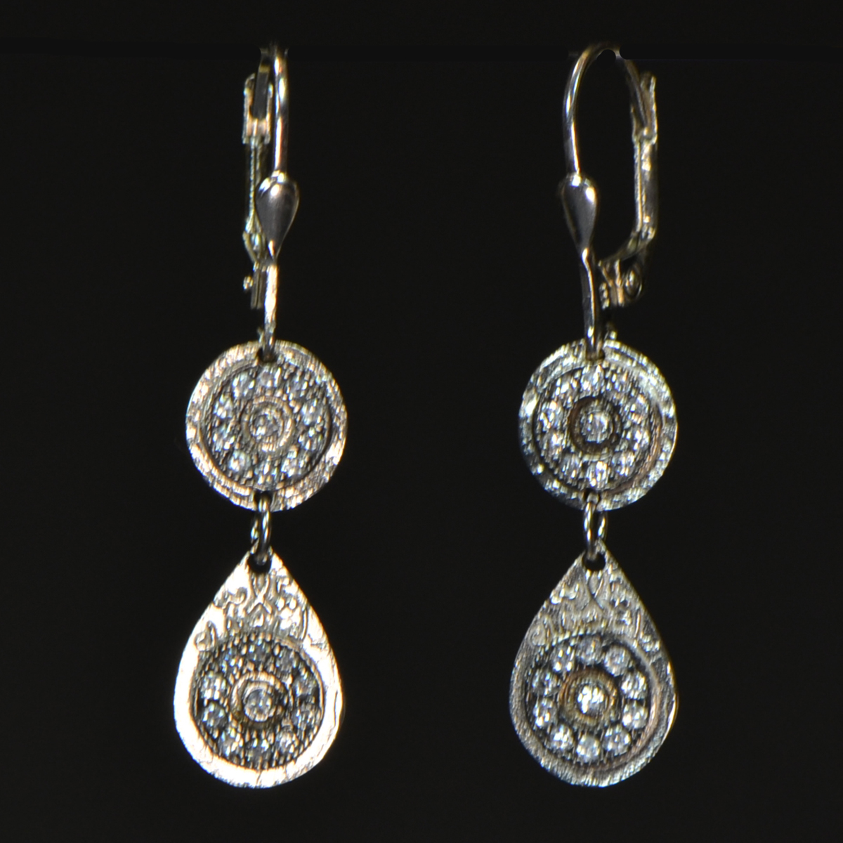- Sterling Silver with CZs - Leverback - Approx. 1 5/8" in Length