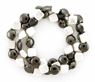 - 3 Separate Strands Alternating Square Matte Gold & Round Gun Metal Coloured Beads