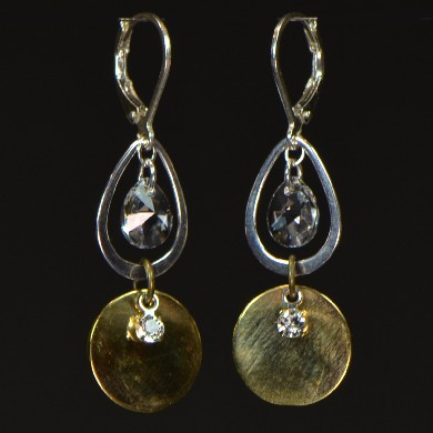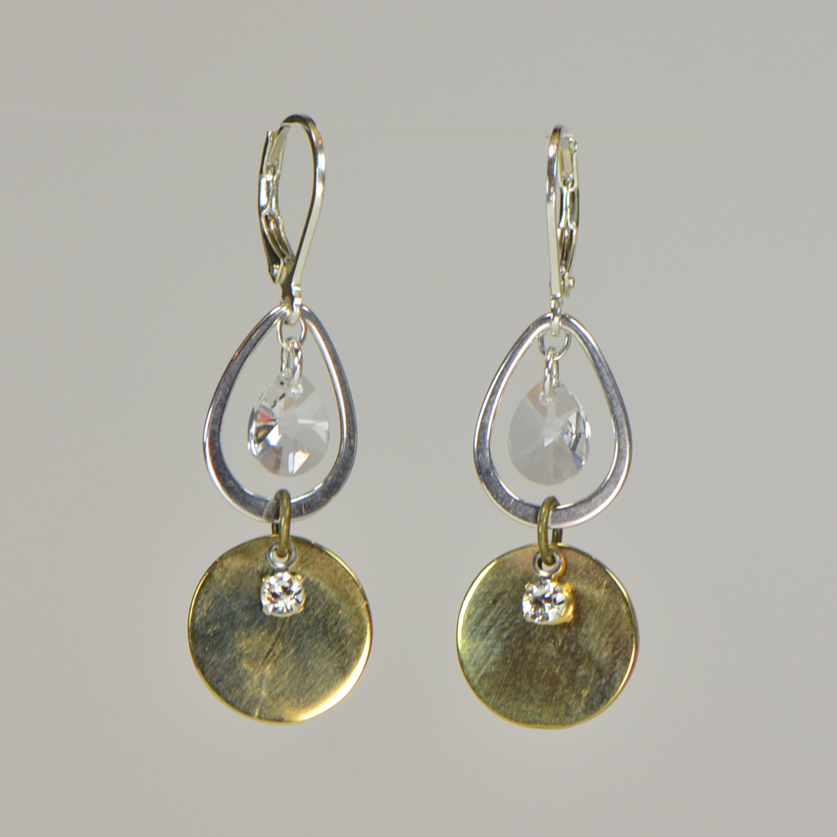 Karley Smith - Silver Teardrop & Swarovski Crystal with Bronze Coin Earrings