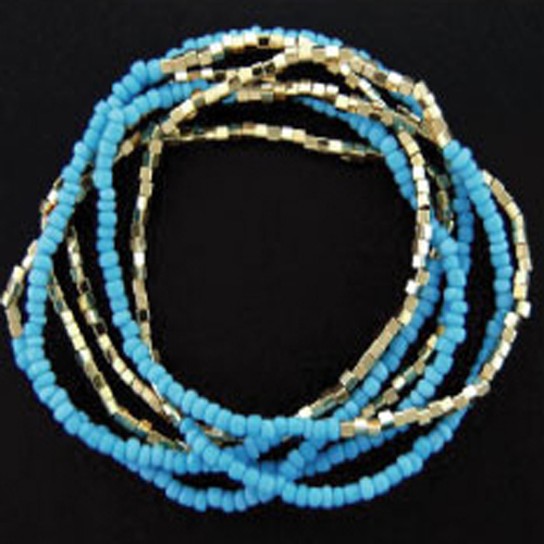 - 6 Strands of Gold Coloured Faceted Metal Beads & Turquoise Seed Beads - Stretch Style