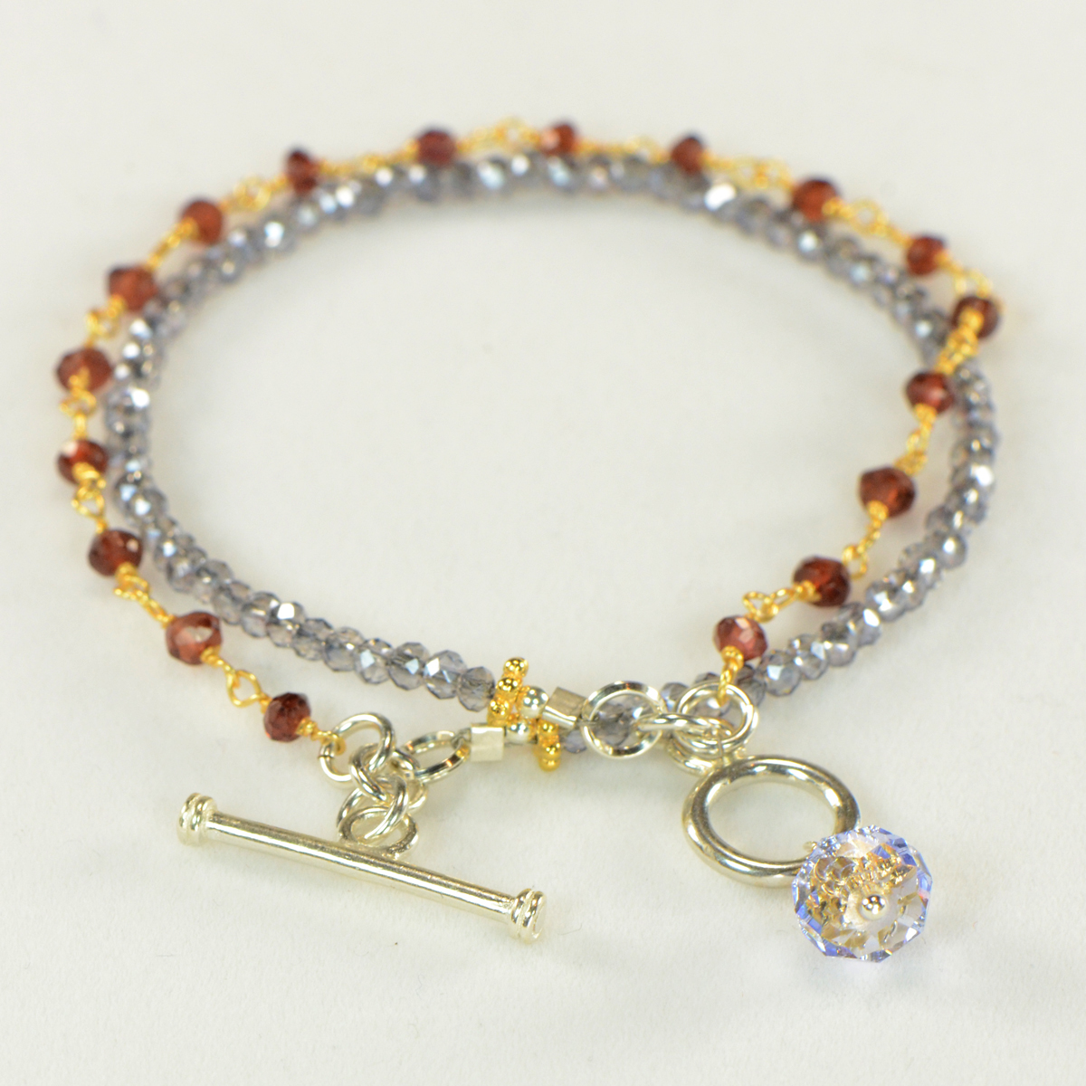 - Garnets Wire Wrapped with a Strand & Charm of Swarovski Crystals