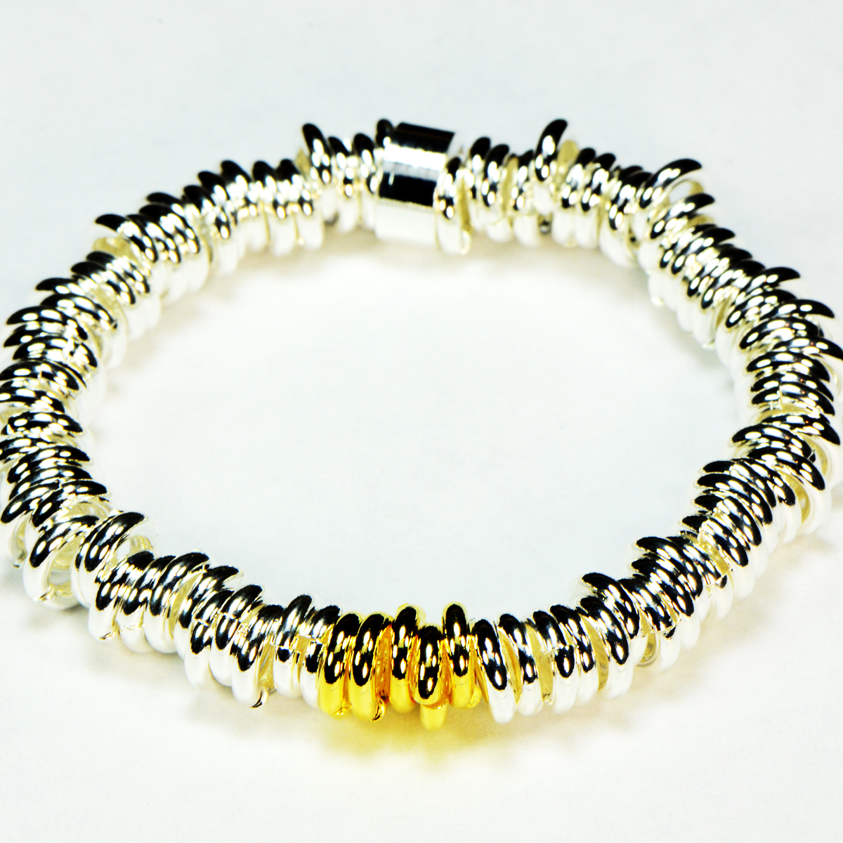 - Designer Inspired Links Bracelet in Silver Finish with Gold Accent