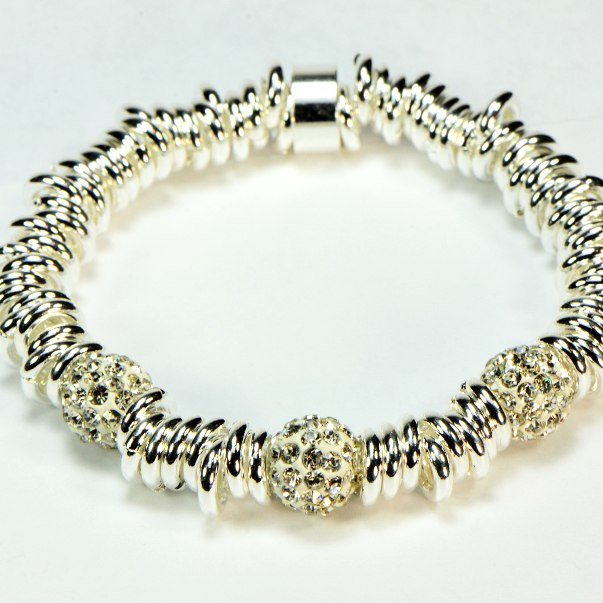 - Designer Inspired Links Bracelet in Silver Finish with 3 Pave Balls