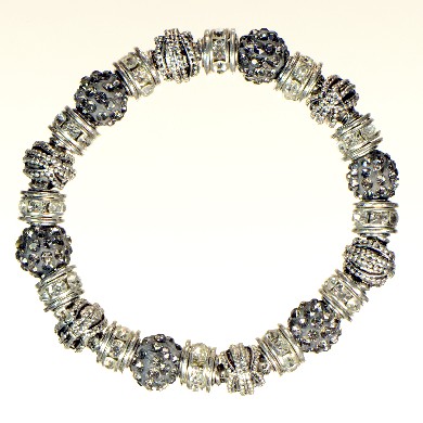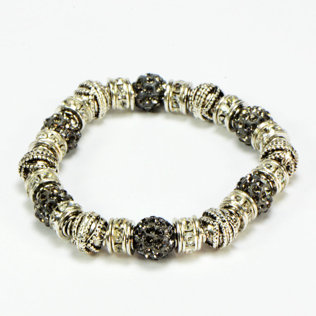 - Silver Finish Bracelet with Pave Balls, Rondelle Crystals & Detailed Beads