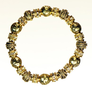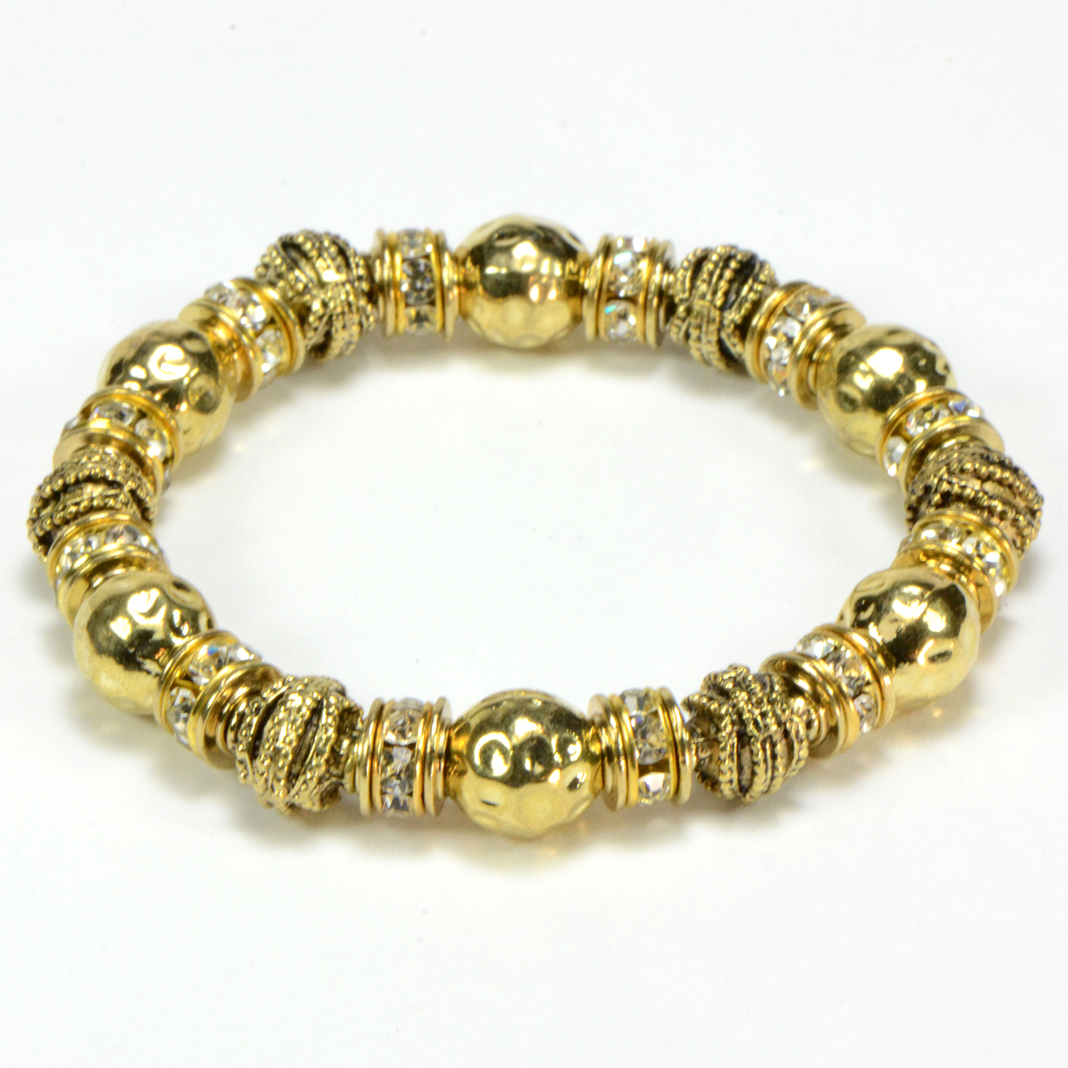 - Gold Finish Bracelet with Stamped Balls, Detailed Beads, & Rondelle Crystals