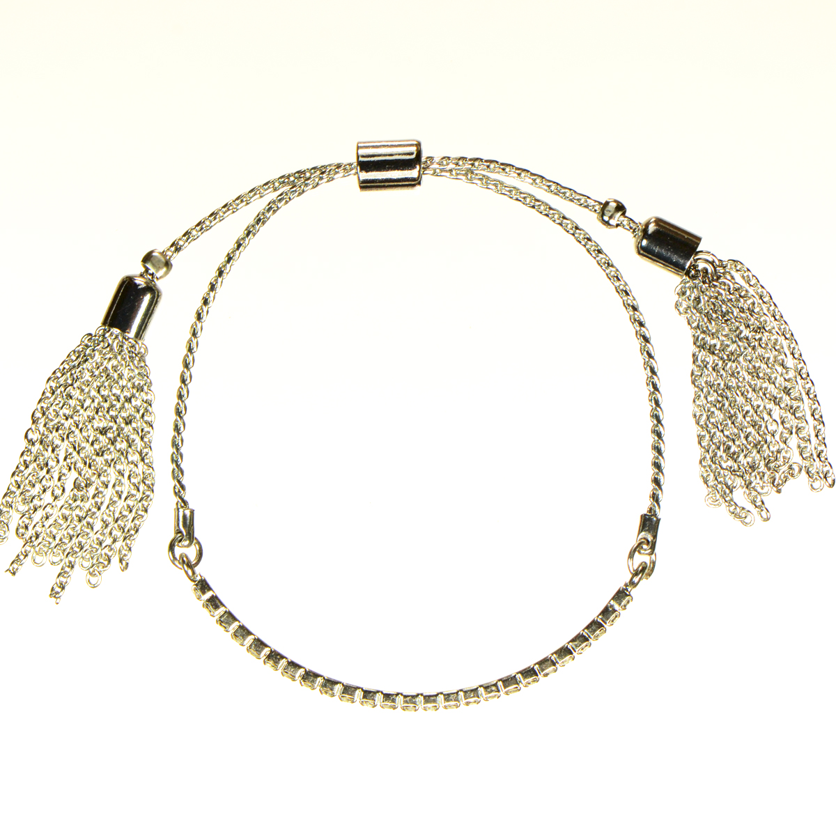 - Crystal Bar with 2 Tassels in Silver Finish - Adjustable Fit