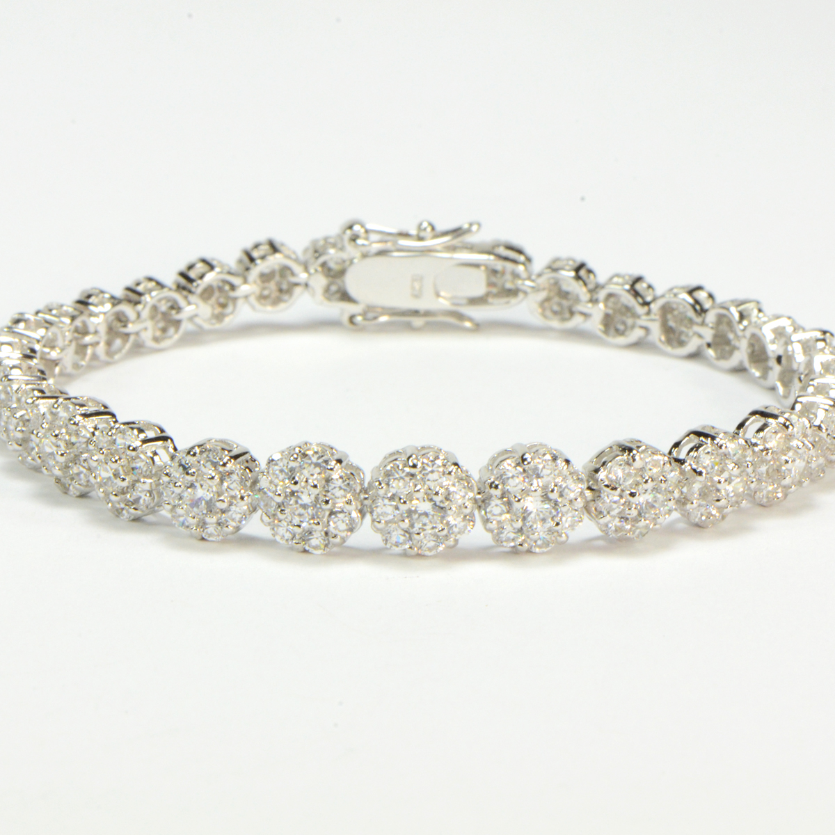 - Exquisite Hand Crafted CZs in a Graduated Flower Design Set in Sterling Silver