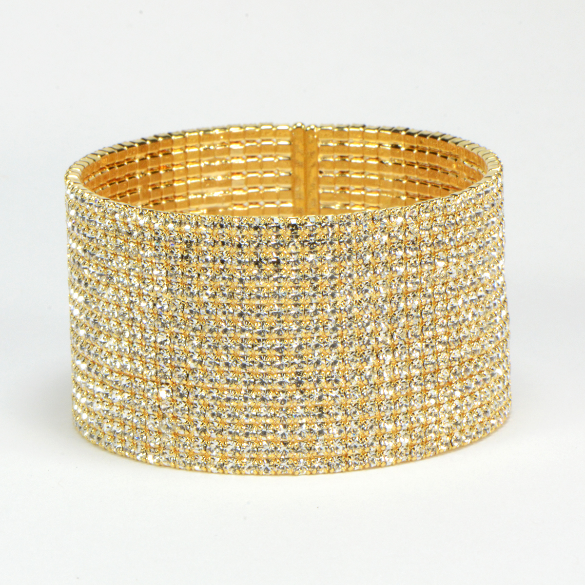 - 15 Rows of Micro Pave CZs in Yellow Gold Finish