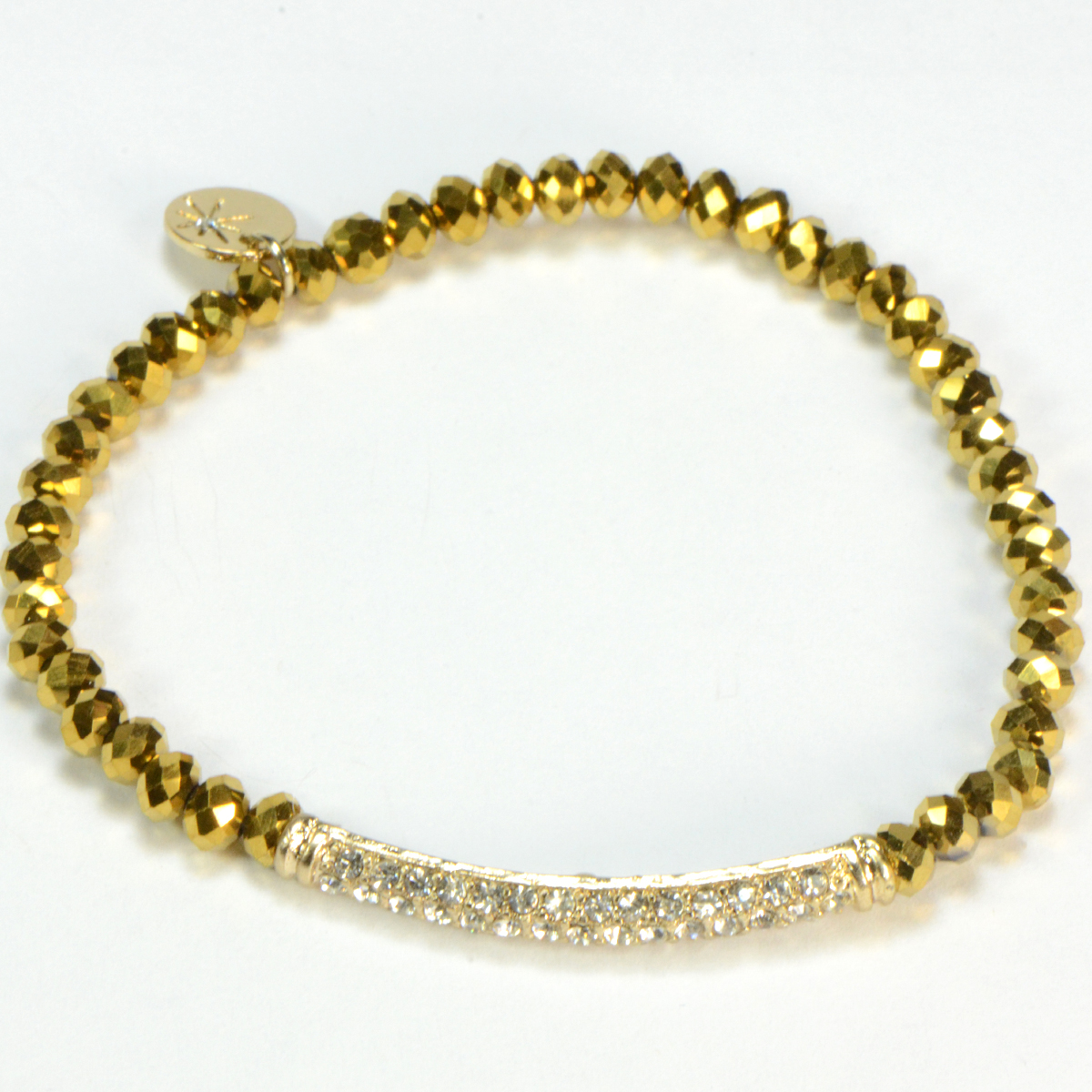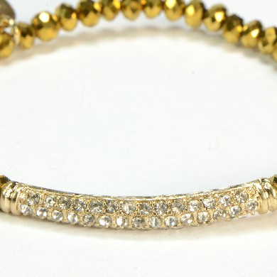 - Gold Crystals on Stretch Bracelet with Pave Crystal Bar - Stretch Style