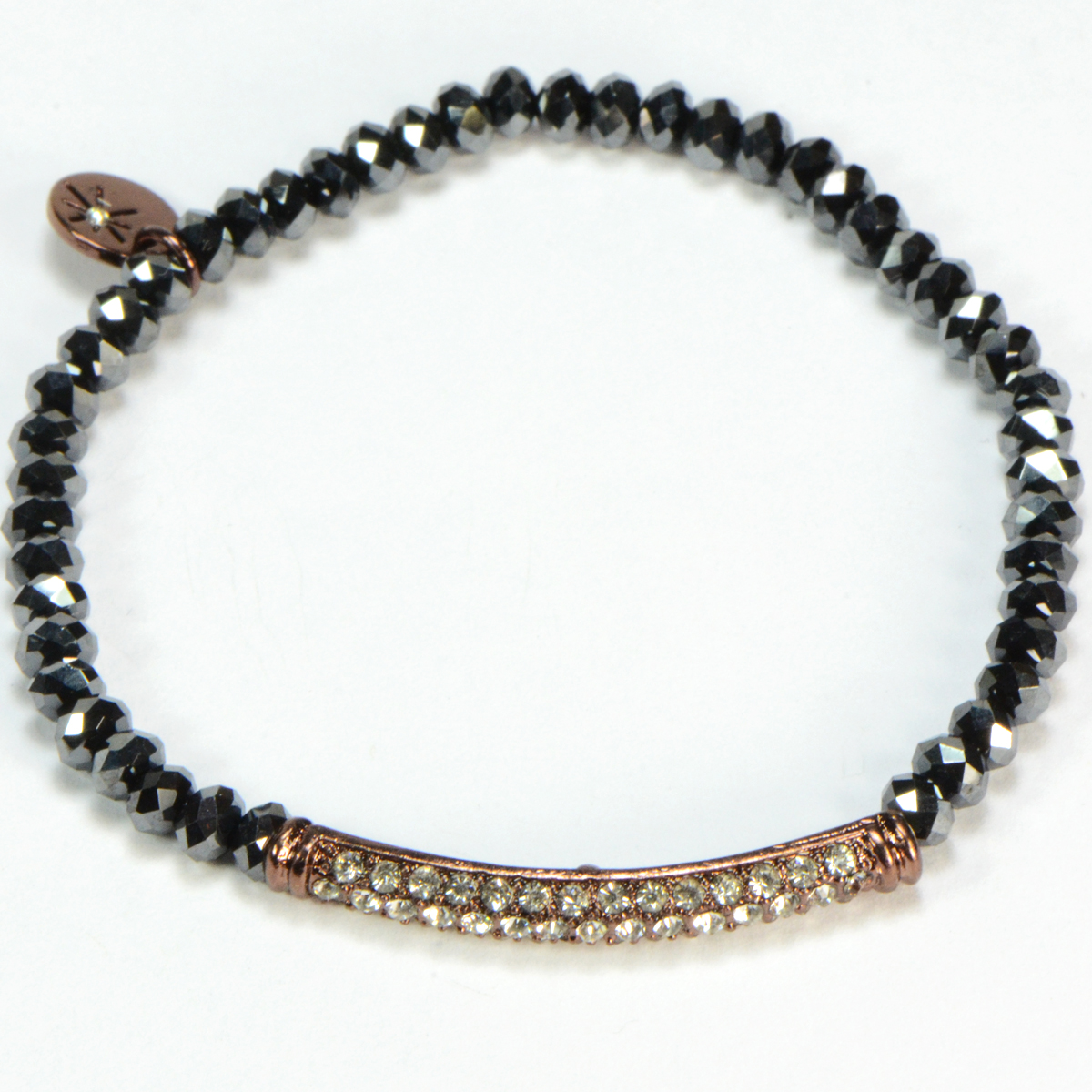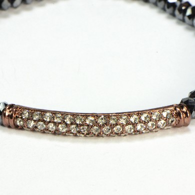 - Blue Crystals on a Stretch Bracelet with Pave Crystal Bar - Stretch Fit