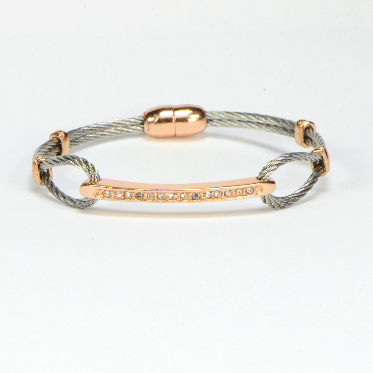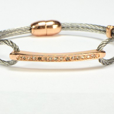 - Twisted Cable in Silver Finish with Rose Gold Tone Pave Bar