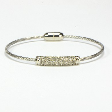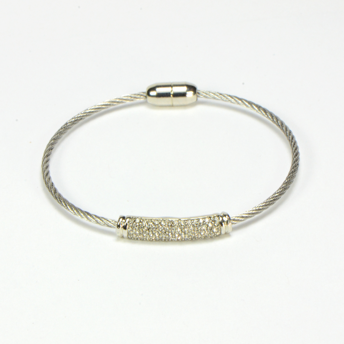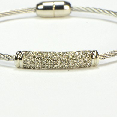- Silver Finish Twisted Cable with Silver Tone Bar with Crystals
