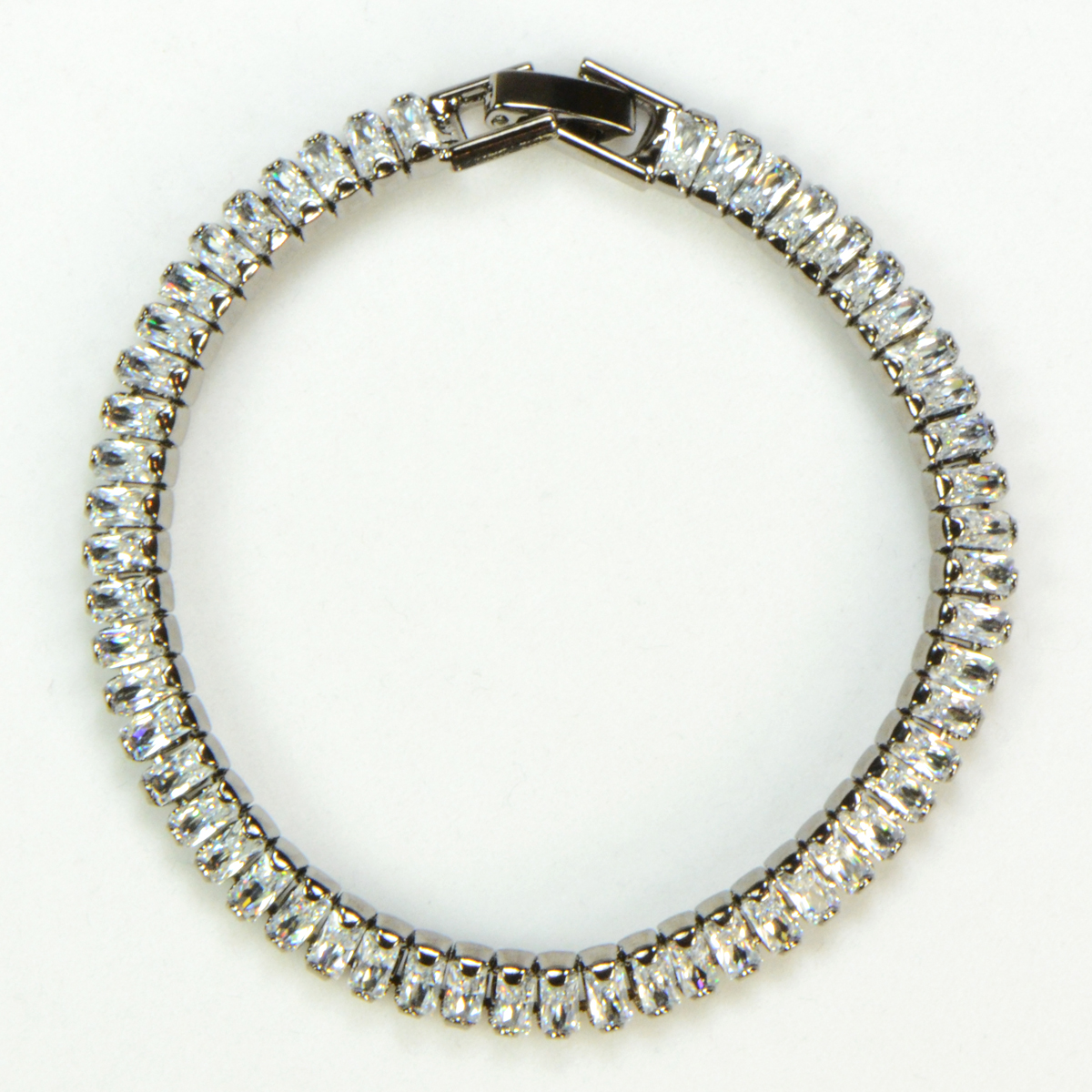- Tennis Bracelet with High Quality Emerald Cut Cubic Zirconia in Gunmetal Finish