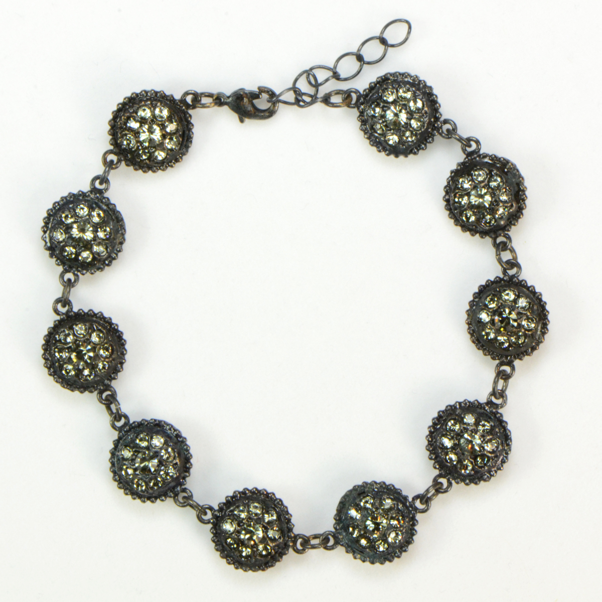 - Rhodium Plated Sterling Silver with 10 Stations of Black Diamond Swarovski Crystals