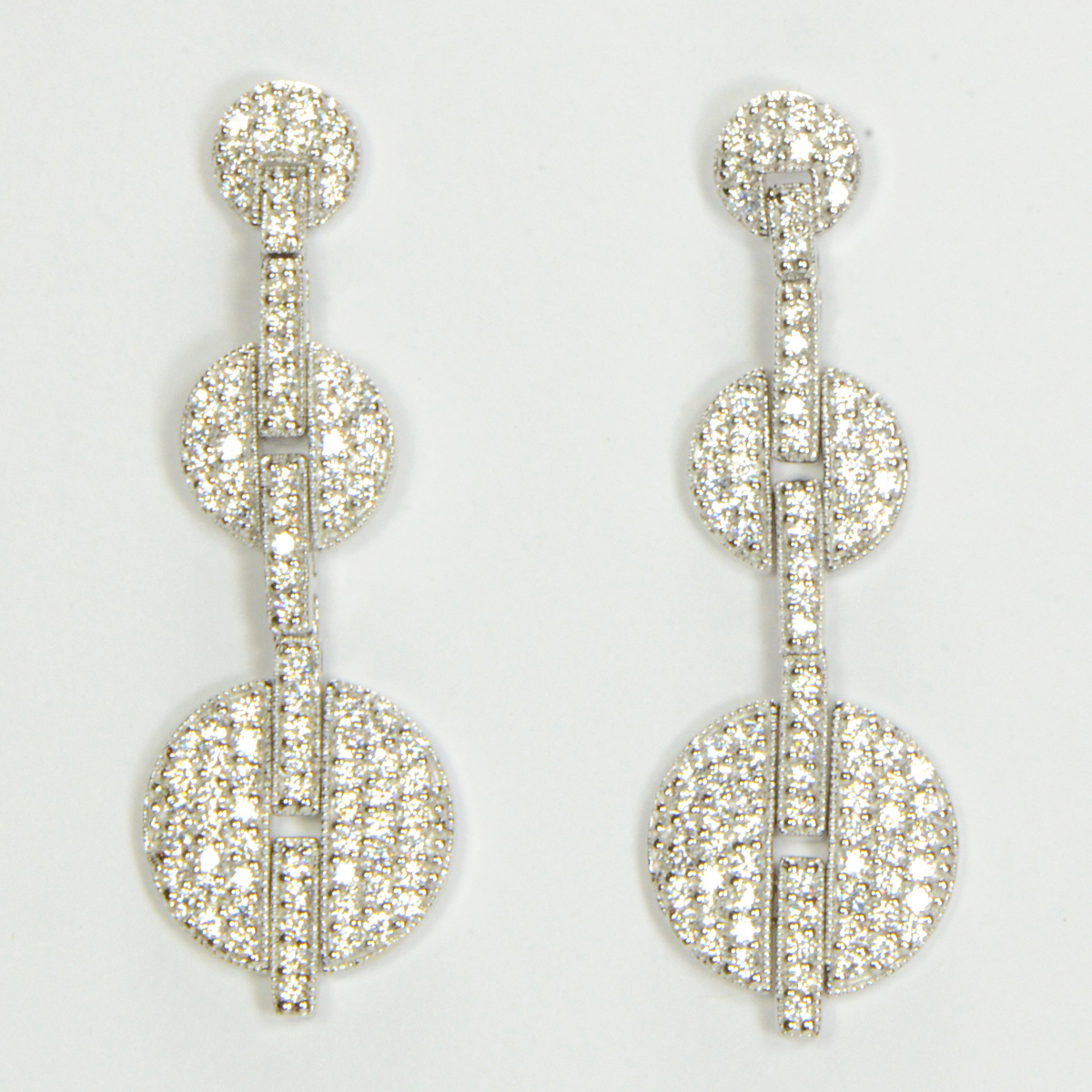 - Sterling Silver Drop Earrings with 3 Dangling Pave Circles