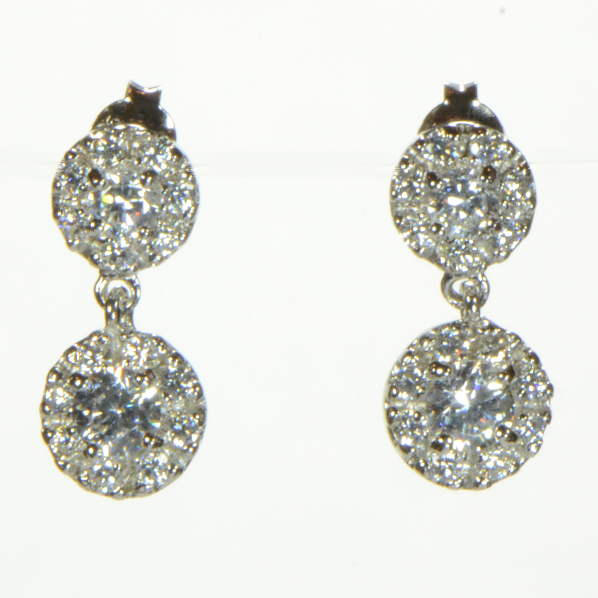 - Delicate Sterling Silver Circle/Flower Pave CZs Drop Earrings