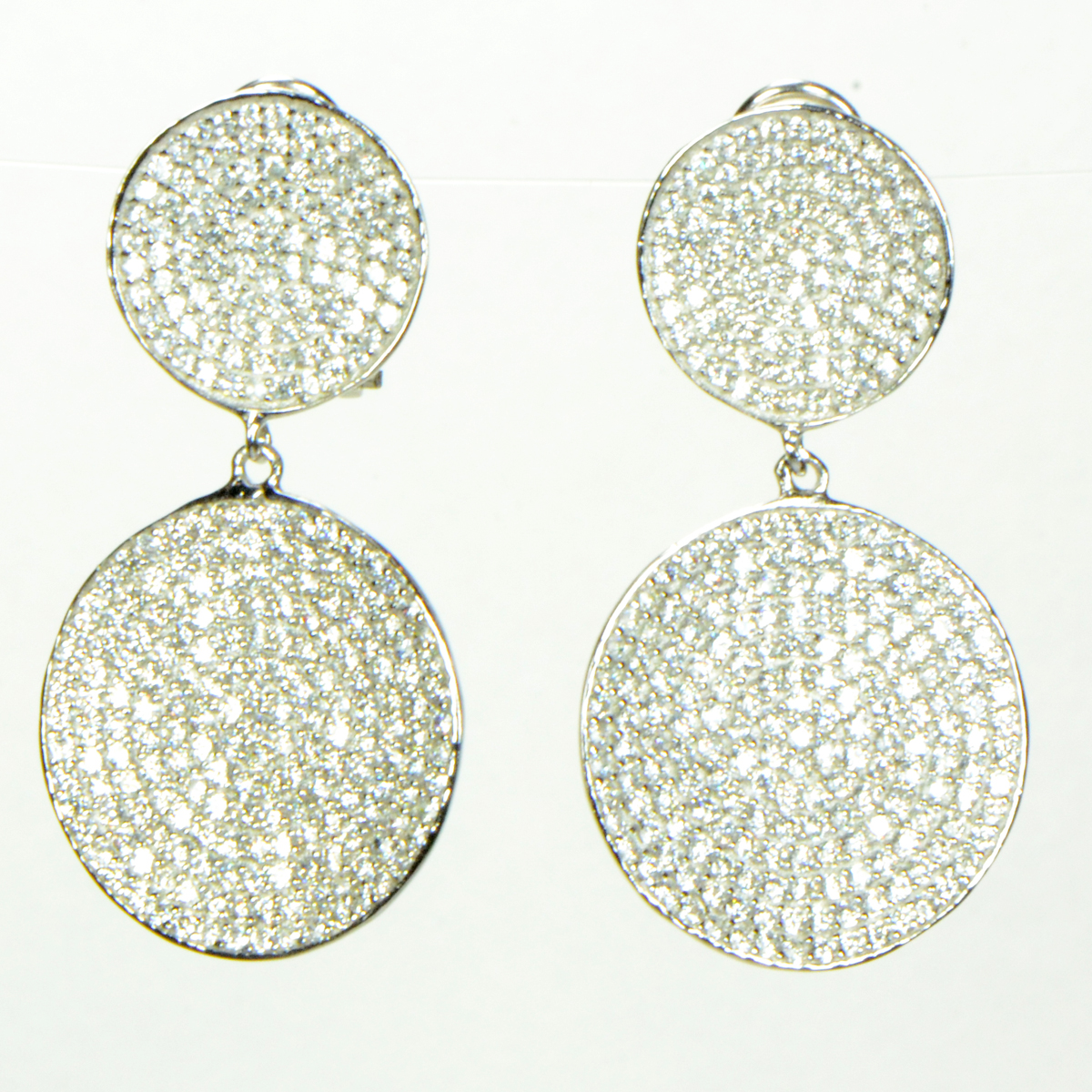 - Sterling Silver Post Clip Double Circle Earrings with Pave CZs