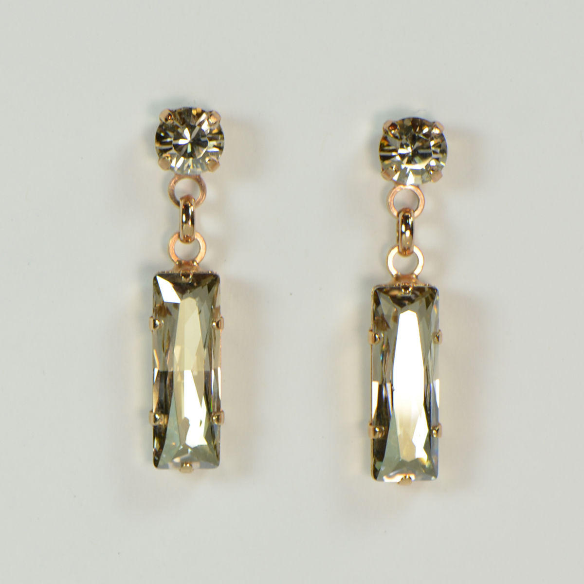 - Rose Gold Plated Silver Shade Baguette & Round Crystal Drop Earrings