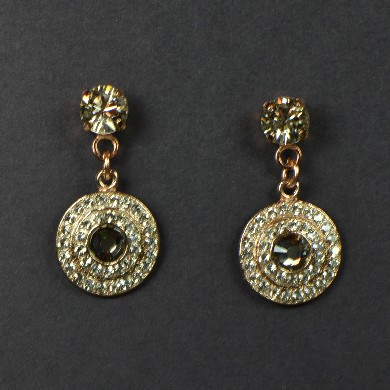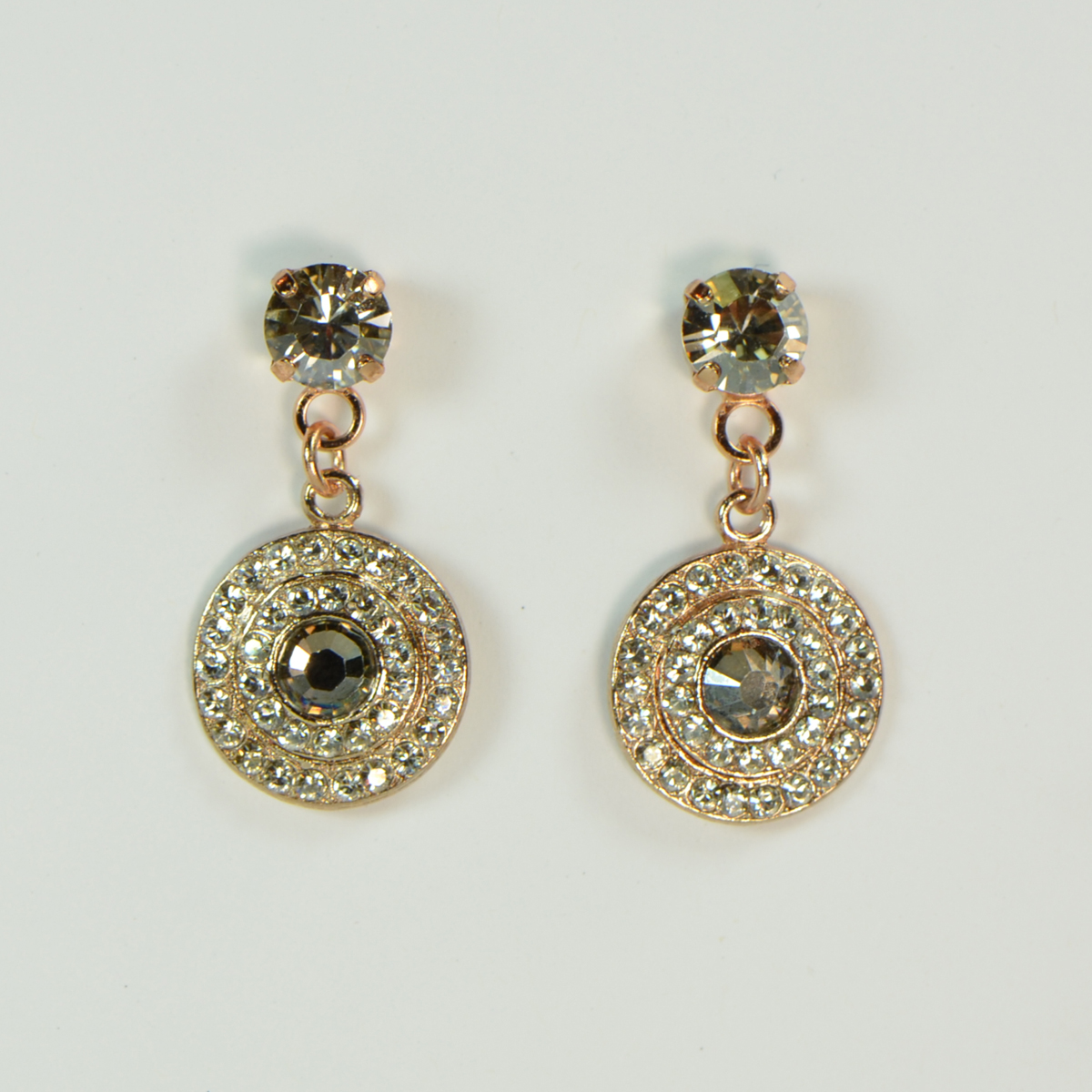 - Clear Swarovski Crystals Surround a Siver Shade Swarovski Crystal Set In Rose Gold Plating Over Silver