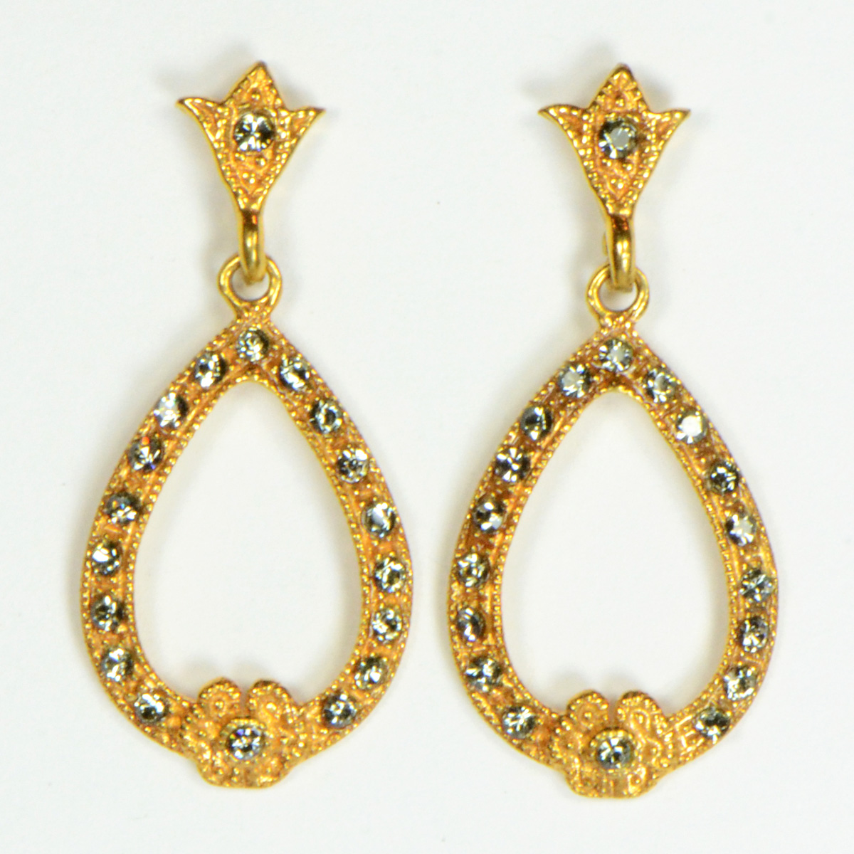 - Tear Drops in 22kt Gold Over Silver Earring with Black diamond Swarovski Crystals