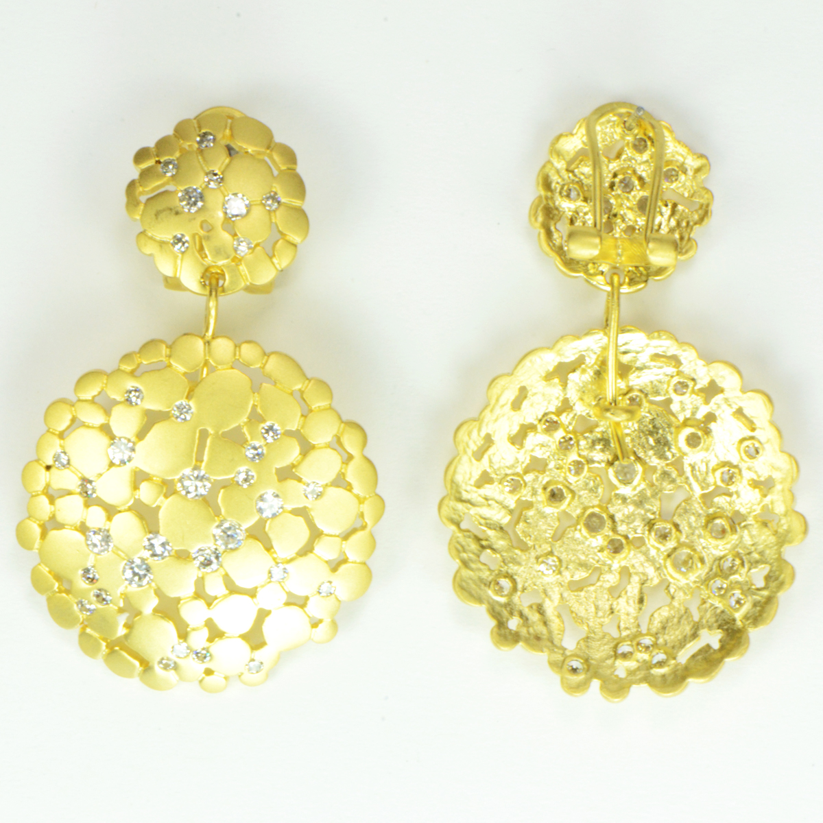 - Gold Plated Brass Cz Circle Cluster Earrings