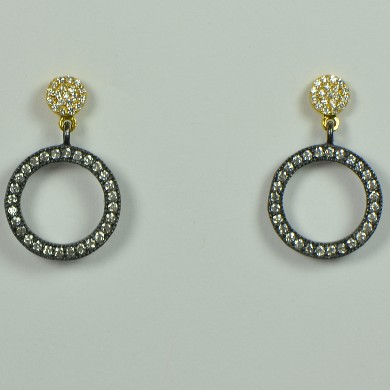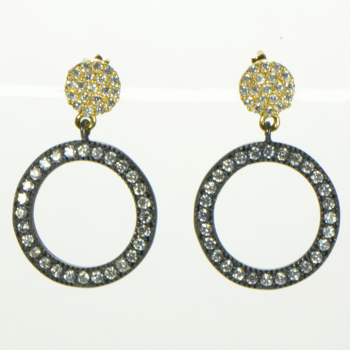 - Oxidized Open Circle with CZs Pave Drop Earrings