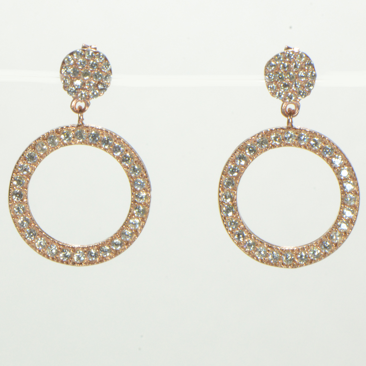 - Rose Gold Open Circle with CZs Pave Drop Earrings