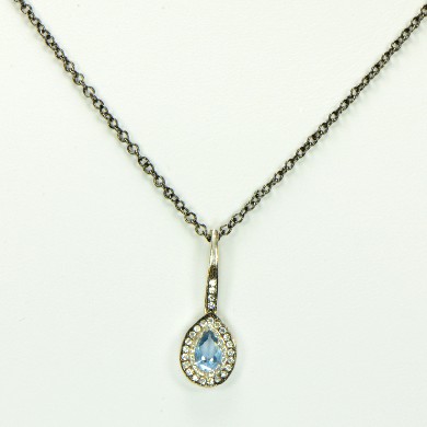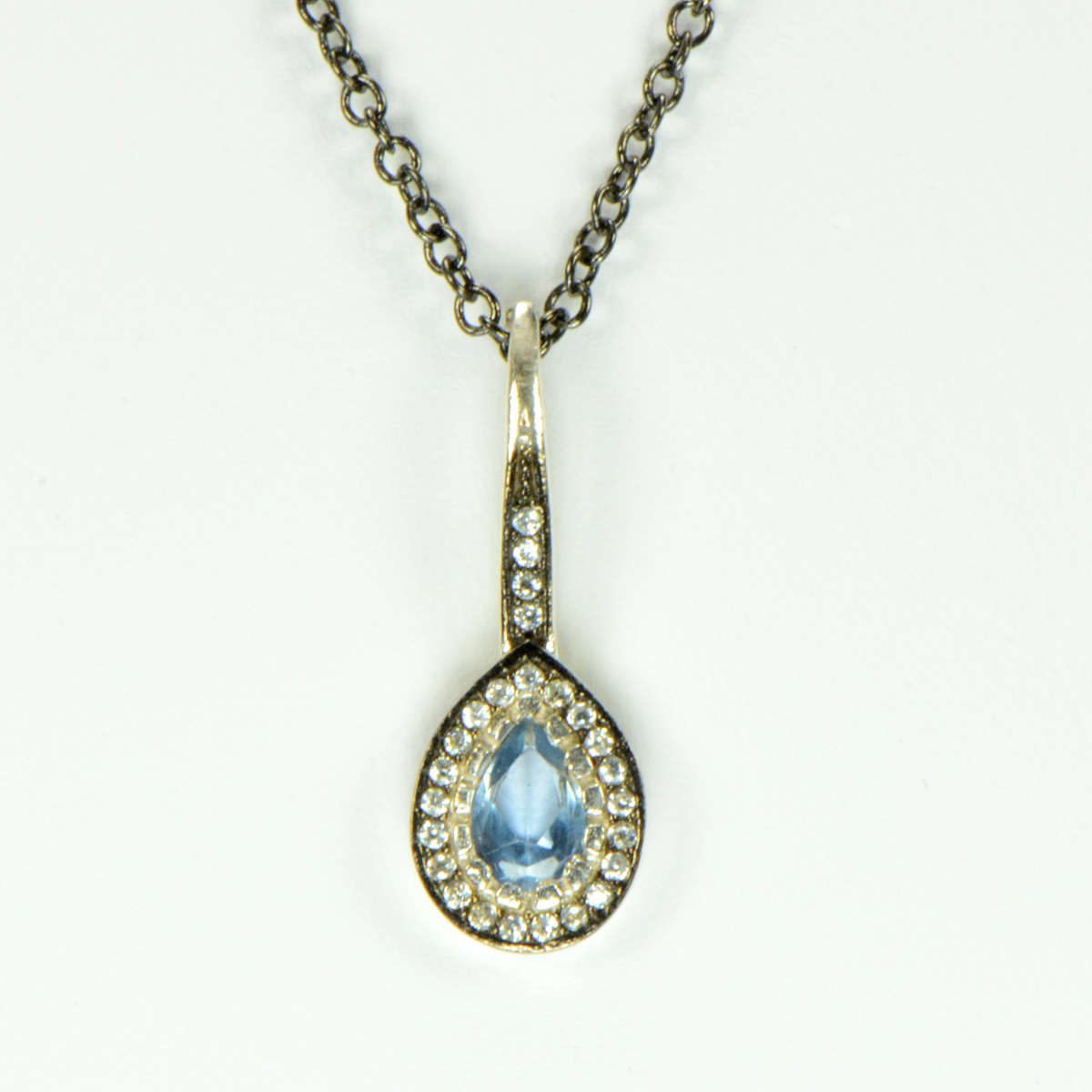 - Delicate Silver Aquamarine Teardrop Pendant with Rhodium Accents & Pave CZs