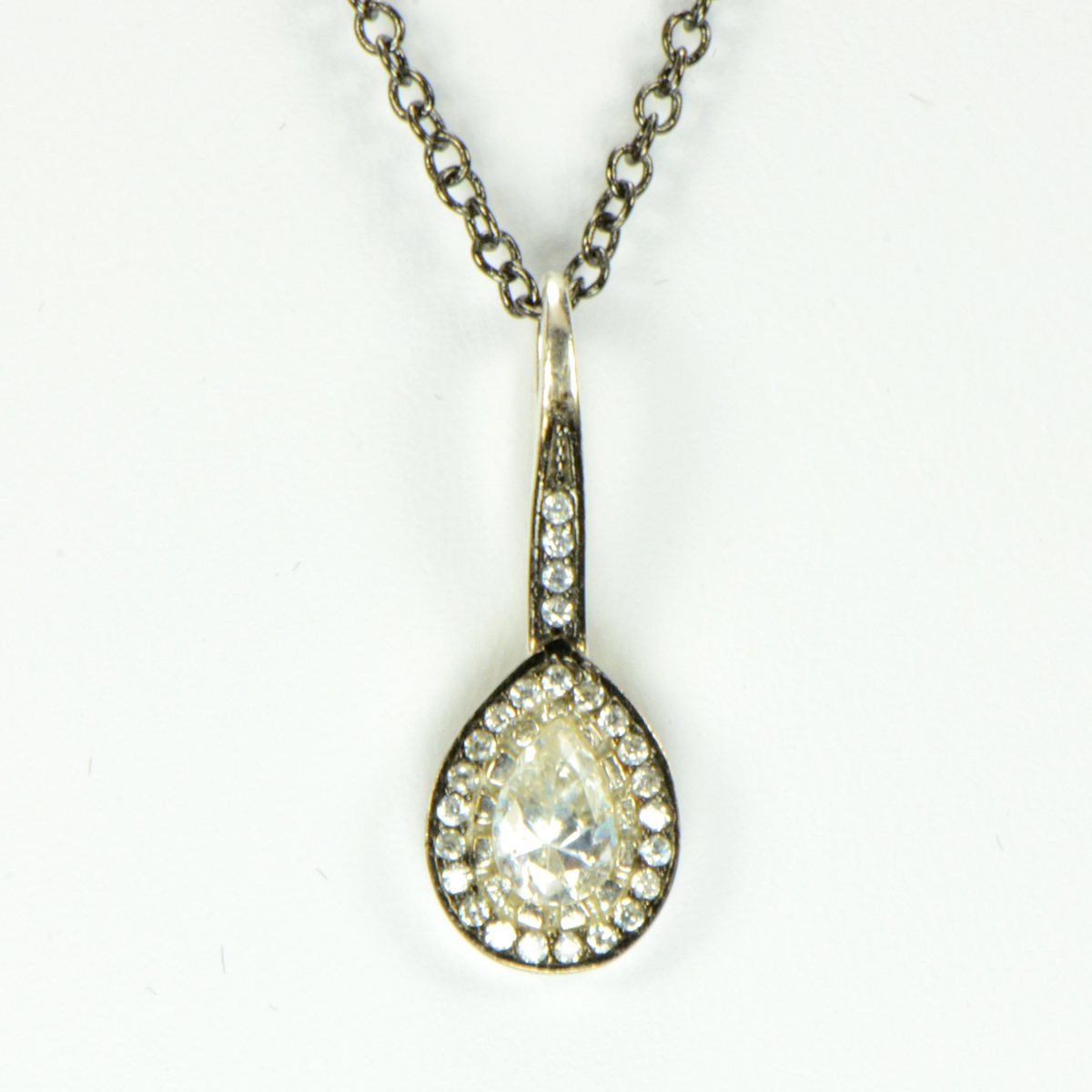 - Delicate Silver CZ teardrop Pendant with Rhodium Accents & Pave CZs