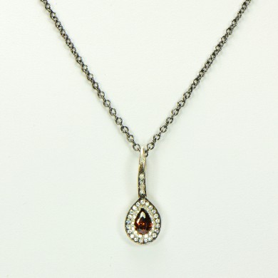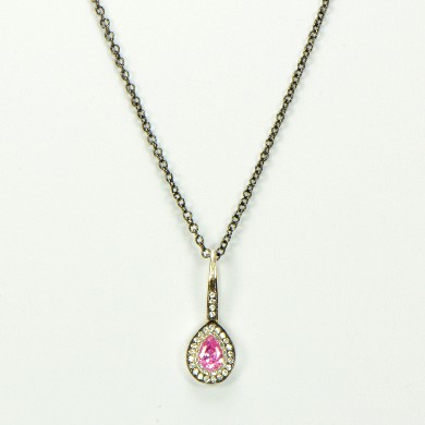 - Delicate Silver Pink CZ Teardrop Pendant with Rhodium Accents & Pave CZs