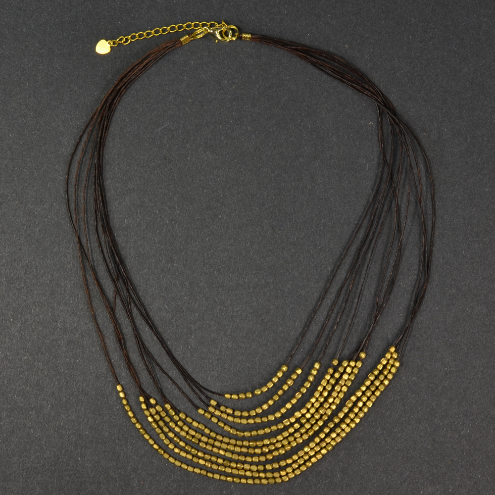 - 10 Strands of Waxed Brown Cotton with Small Gold Beads