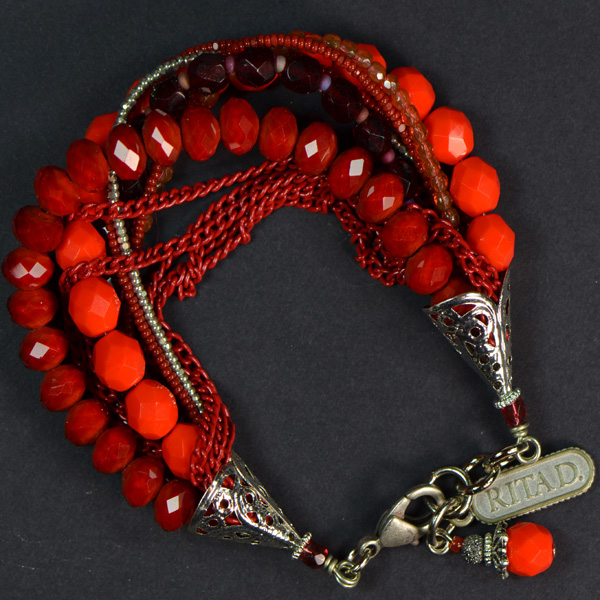 - 11 Strands of Red-Toned Crystals & Beads with Red Chains