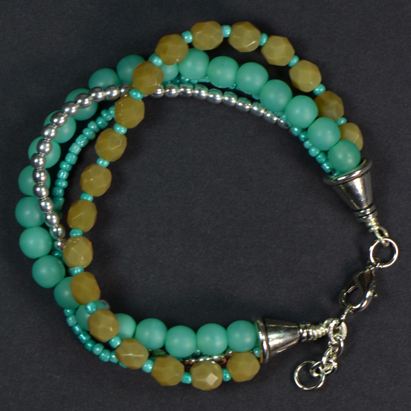 - 4 Strands of Mixed Beads in Matte Aqua, Cognac & Silver