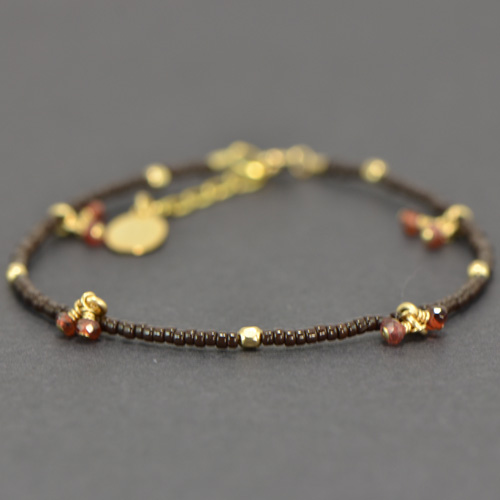 Chibi Glass Bead & Gemstone Dangle Bracelet - Brown with Red Garnet