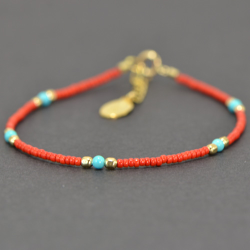 Chibi Glass Bead & Gemstone Bracelet - Red with Turquoise