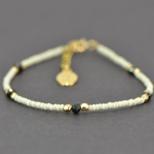 Chibi Glass Bead & Gemstone Bracelet - Grey with Black Garnets