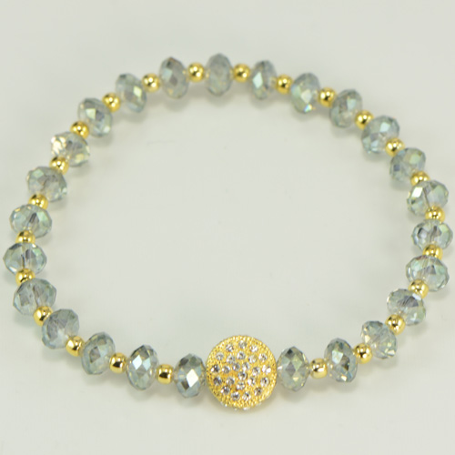 - Green Crystals with Small 14K Gold Plated Beads - Stretchy Style
