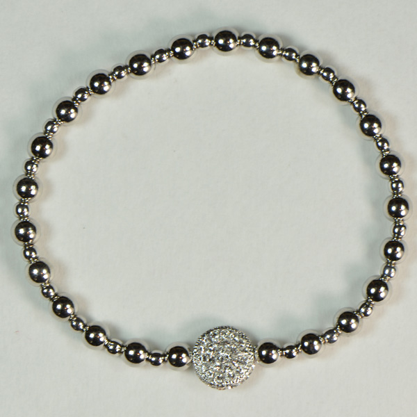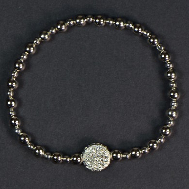 Shiny Beads With Silver Pave Disc