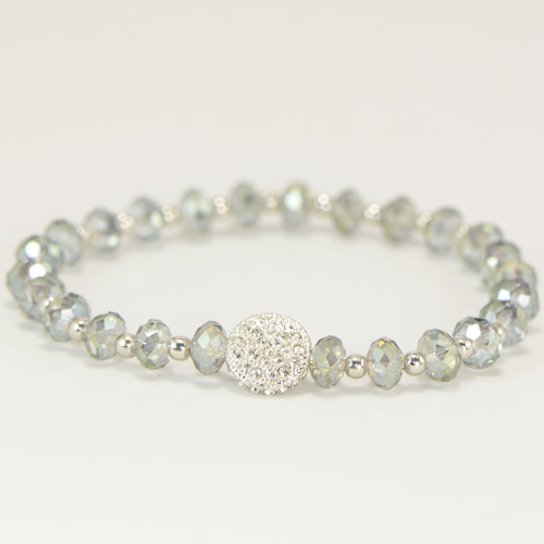 Swarovski Crystal Green Stretch Bracelet with Silver Pave Disc