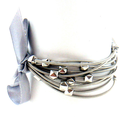 - 10 Silver Elastic Cord Bracelet - Each Strand Has Small Square Beads
