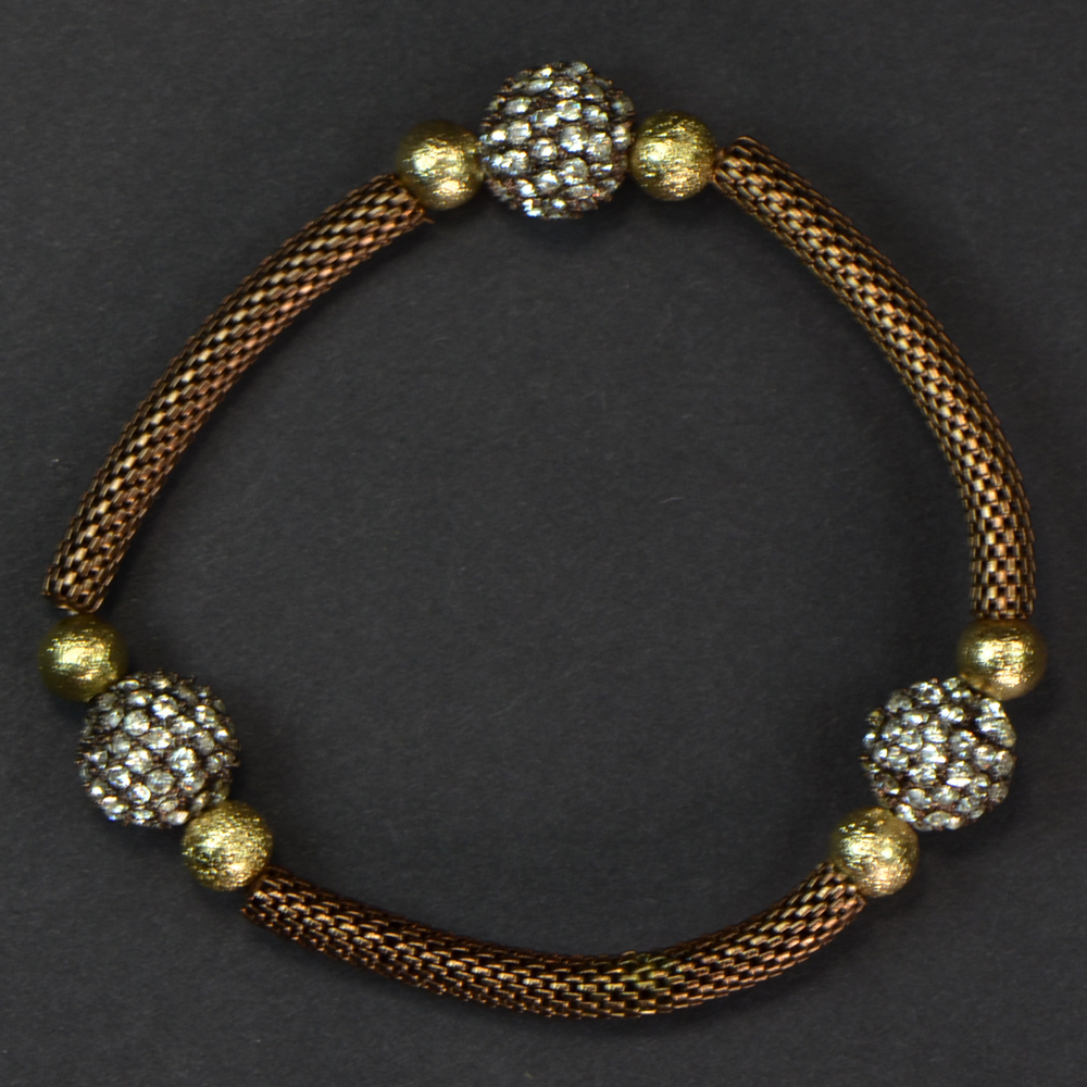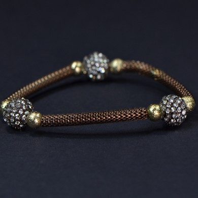 - Brown Mesh Chain with 3 Pave Balls & Gold Stardust Balls