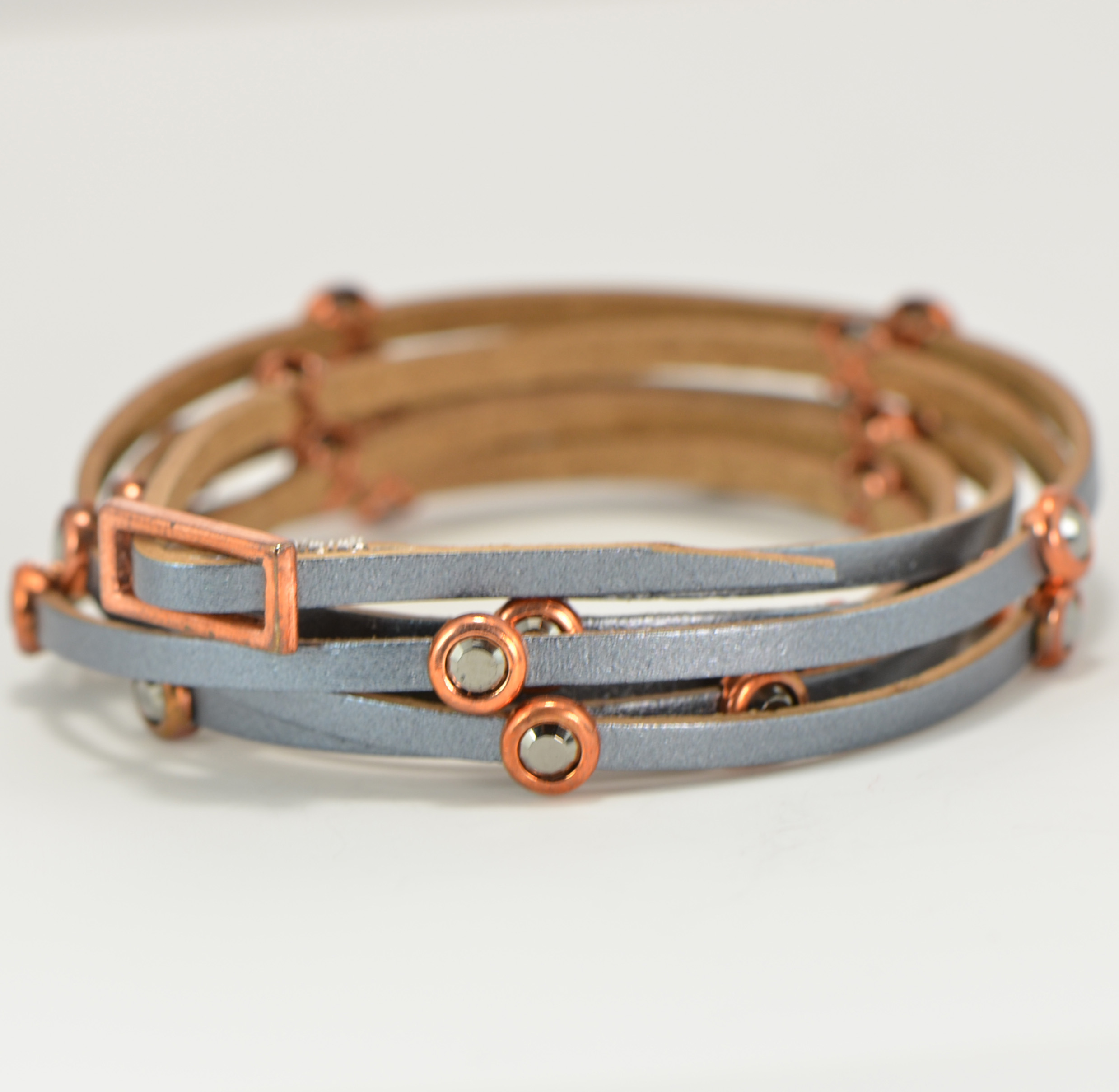 - Thin Grey Leather Wrap that Slides into a Buckle