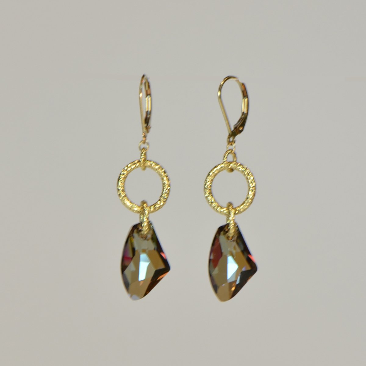 - 19mm Galactic Swarovski Crystals with Gold Filled Textured Rings