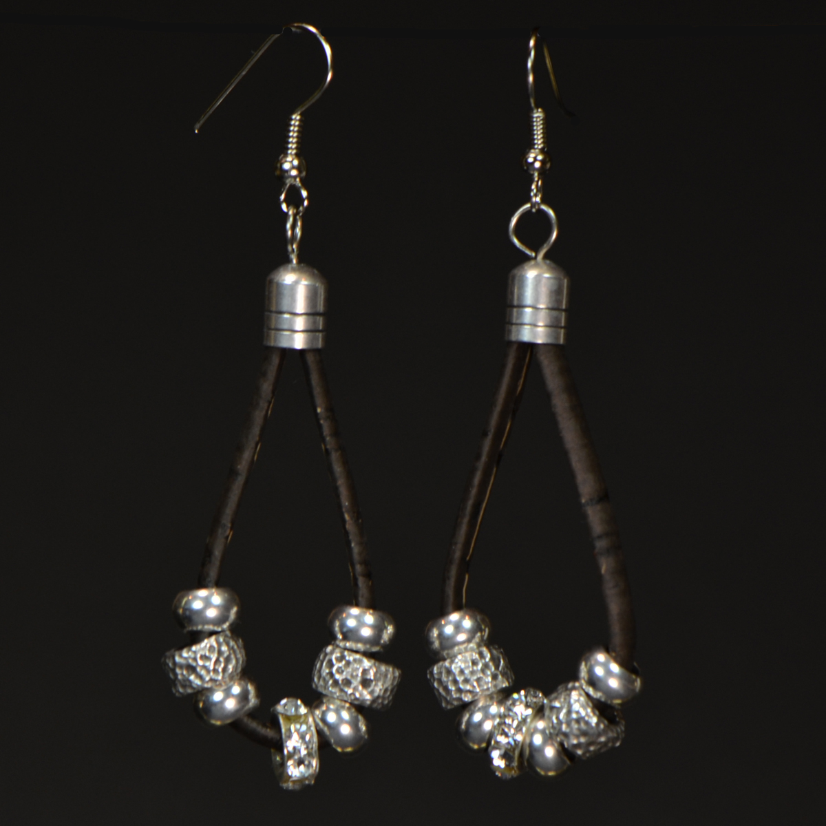 - Dark Brown Cork earrings with Silver Accents