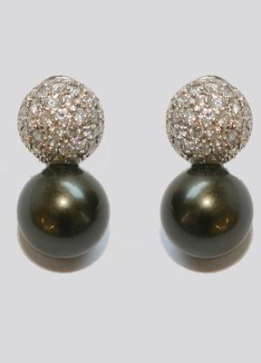Sterling Silver Post Pave MOP 14mm Black Earrings