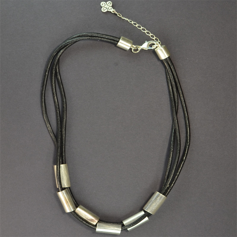 - 3 Rows of Soft Black Leather & Silver Tubes